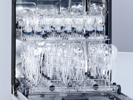 - Suuri kertatäyttömäärä (jopa 130 suorasuihkupaikkaa kapeakaulaiselle laboratoriolasille) täysin uudelleen suunnitellun pesutilan ja uudenlaisen korijärjestelmän ansiosta säästää aikaa, tilantarvetta ja hankintakustannuksia