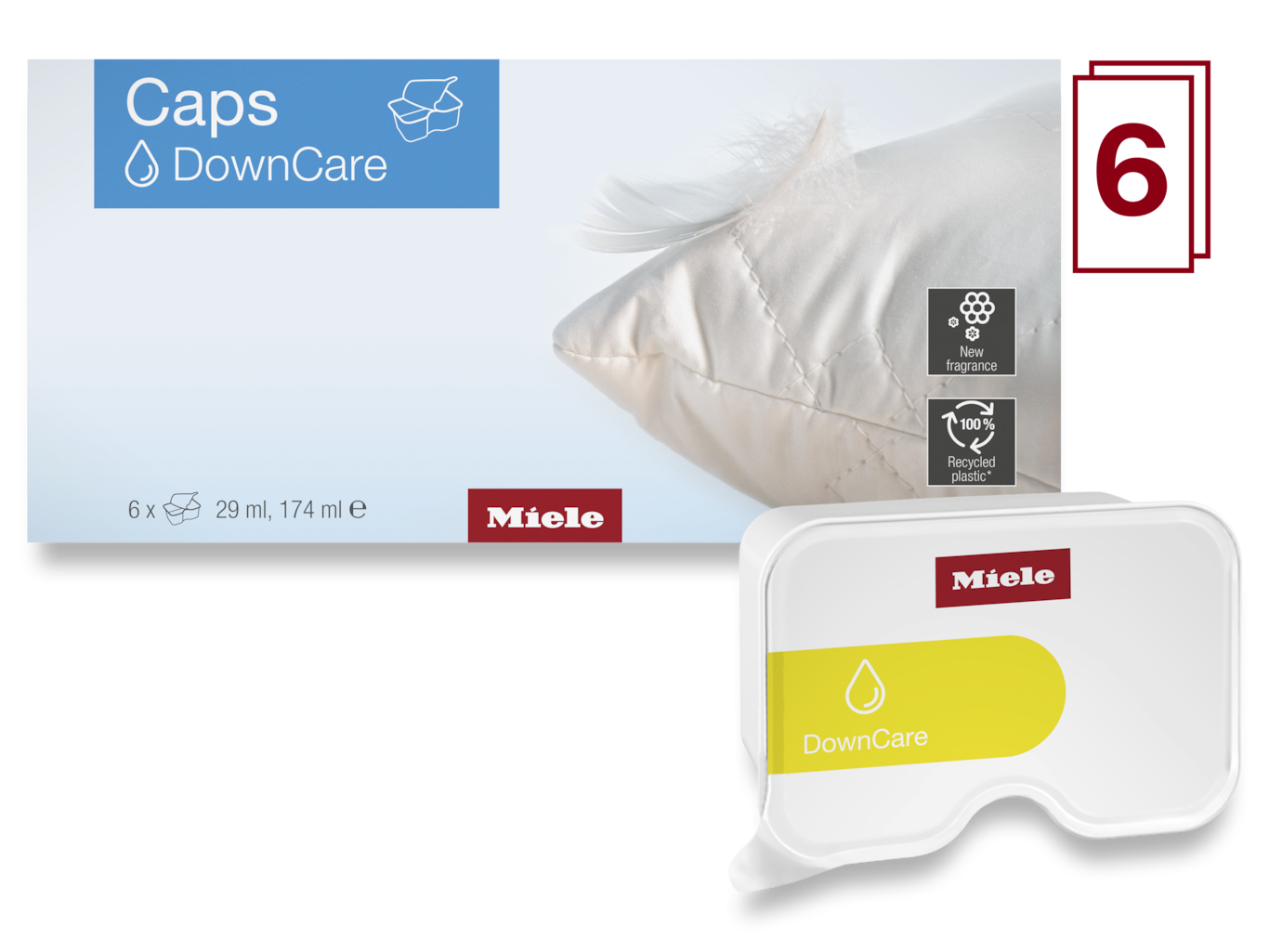 Pidämme huolta ympäristöstä: Miele-pesuaineet ovat tiivisteitä, eli pakkausmateriaalia kuluu pesua kohti vähemmän.