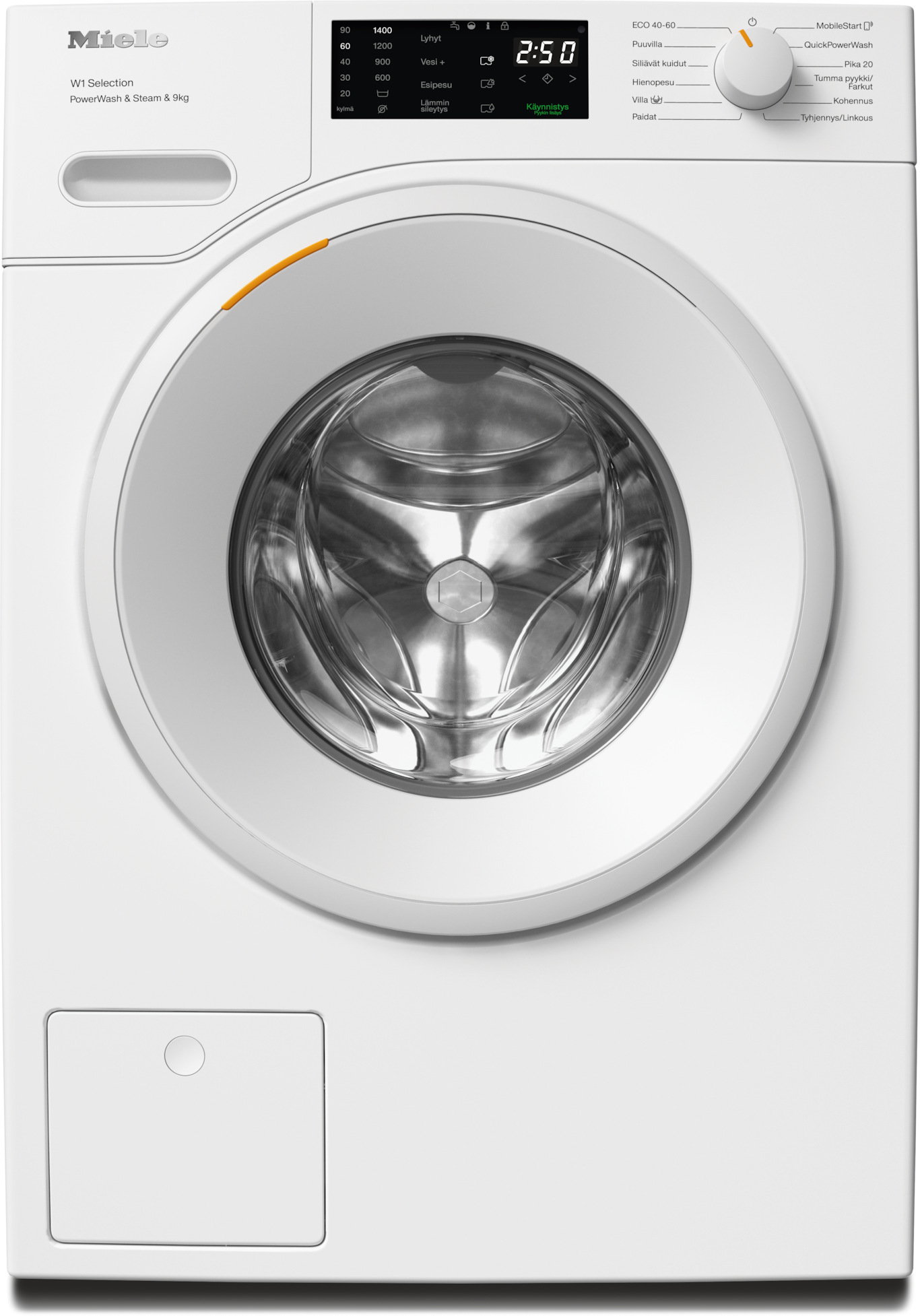 - 2.Miele on tehnyt W1-/W2-pesukoneiden tuotekehitysvaiheen aikana koneille ja niiden keskeisille komponenteille eri pesuohjelmilla vaativia kestävyystestejä, jotka vastaavat 5000 pesukertaa (= 5 pyykkierää viikossa 50 viikkona vuodessa). Lue lisää: https://www.miele.fi/20vuotta