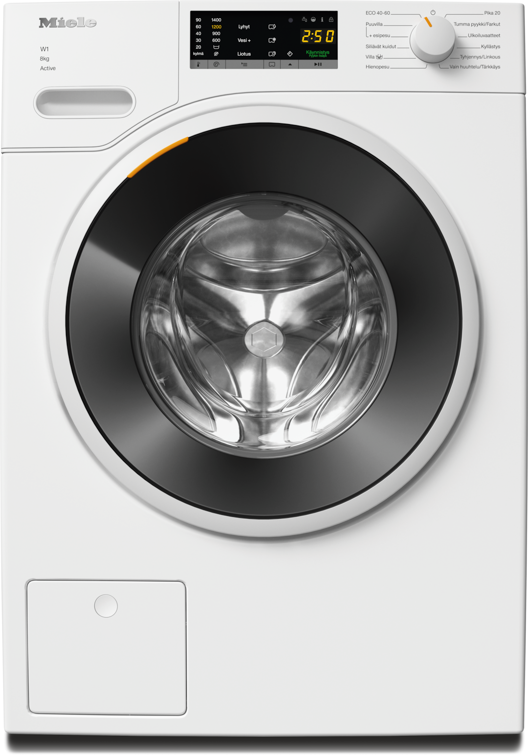 - 2.Miele on tehnyt W1-/W2-pesukoneiden tuotekehitysvaiheen aikana koneille ja niiden keskeisille komponenteille eri pesuohjelmilla vaativia kestävyystestejä, jotka vastaavat 5000 pesukertaa (= 5 pyykkierää viikossa 50 viikkona vuodessa). Lue lisää: https://www.miele.fi/20vuotta