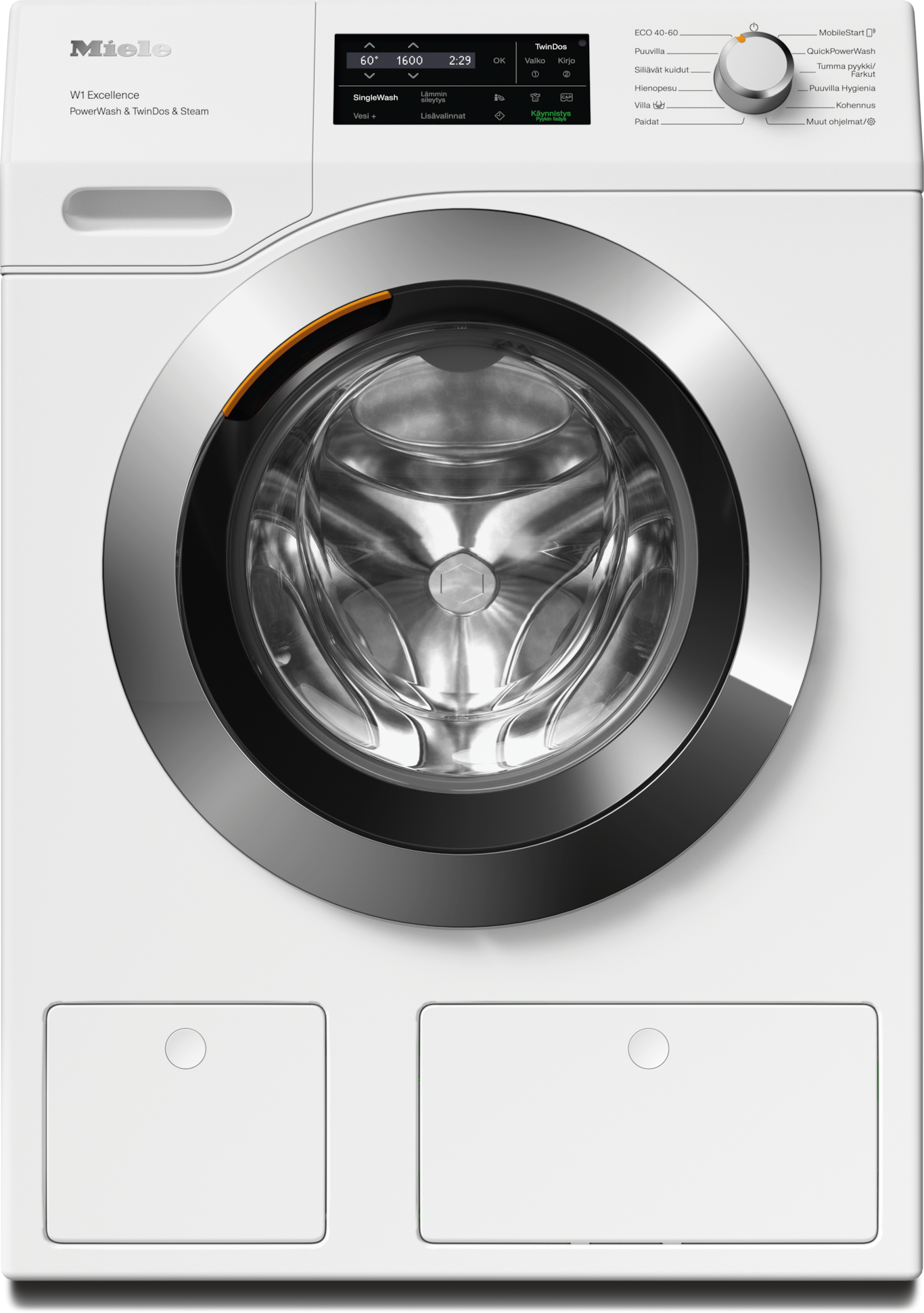 - 8.Albstadt-Sigmaringen-ammattikorkeakoulun Integratiivisen hygienian ja virologian laitoksen testaama (InFluenc_H), saanut Gold Label -merkinnän. Koskee kaikkia TwinDos ® - ja PowerWash-toiminnoilla varustettuja malleja käytettäessä Puuvilla Hygienia 60 °C -ohjelmaa ja Hygienia Plus -lisätoimintoa. Menetelmän kuvauksen löydät seuraavasta linkistä: https://www.miele.com/wa-c